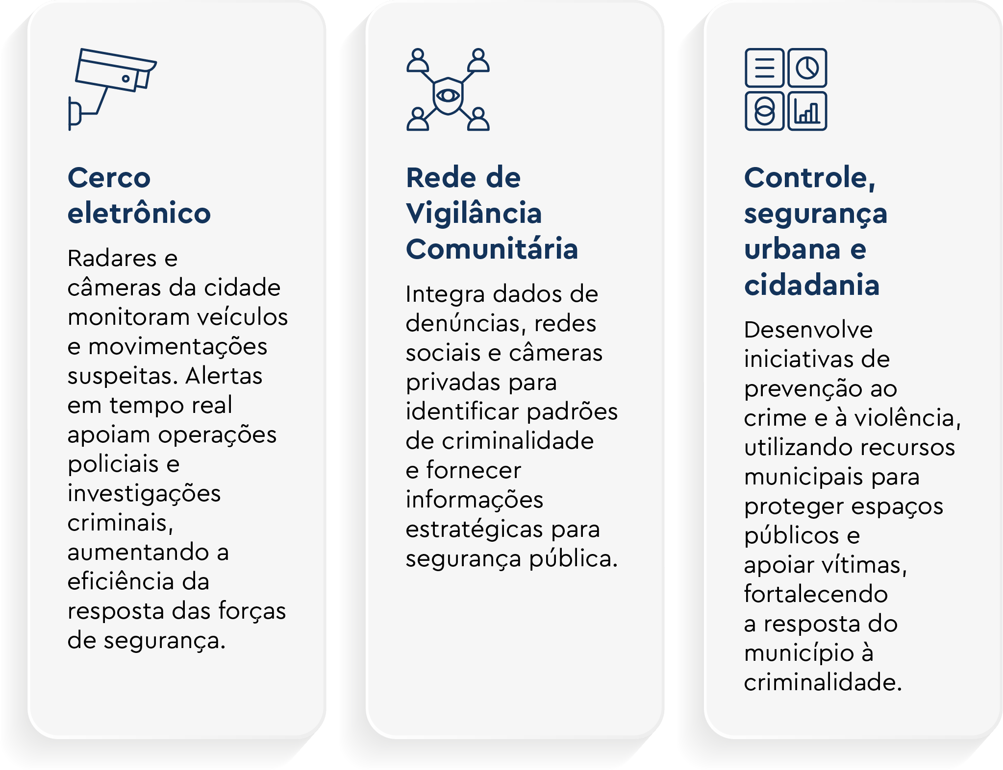 A CIVITAS tem como objetivo principal organizar, cruzar e analisar dados que a cidade produz com o olhar da segurança pública em tempo real. Para que isso seja possível, conta com:
